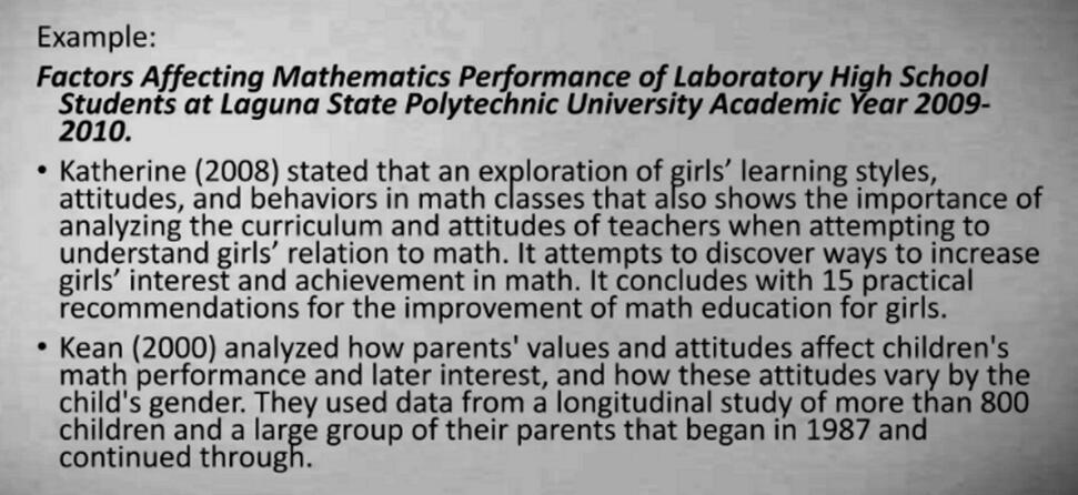 In this part, the researcher does not need to specify the year of publication or the date on which the study has been conducted.